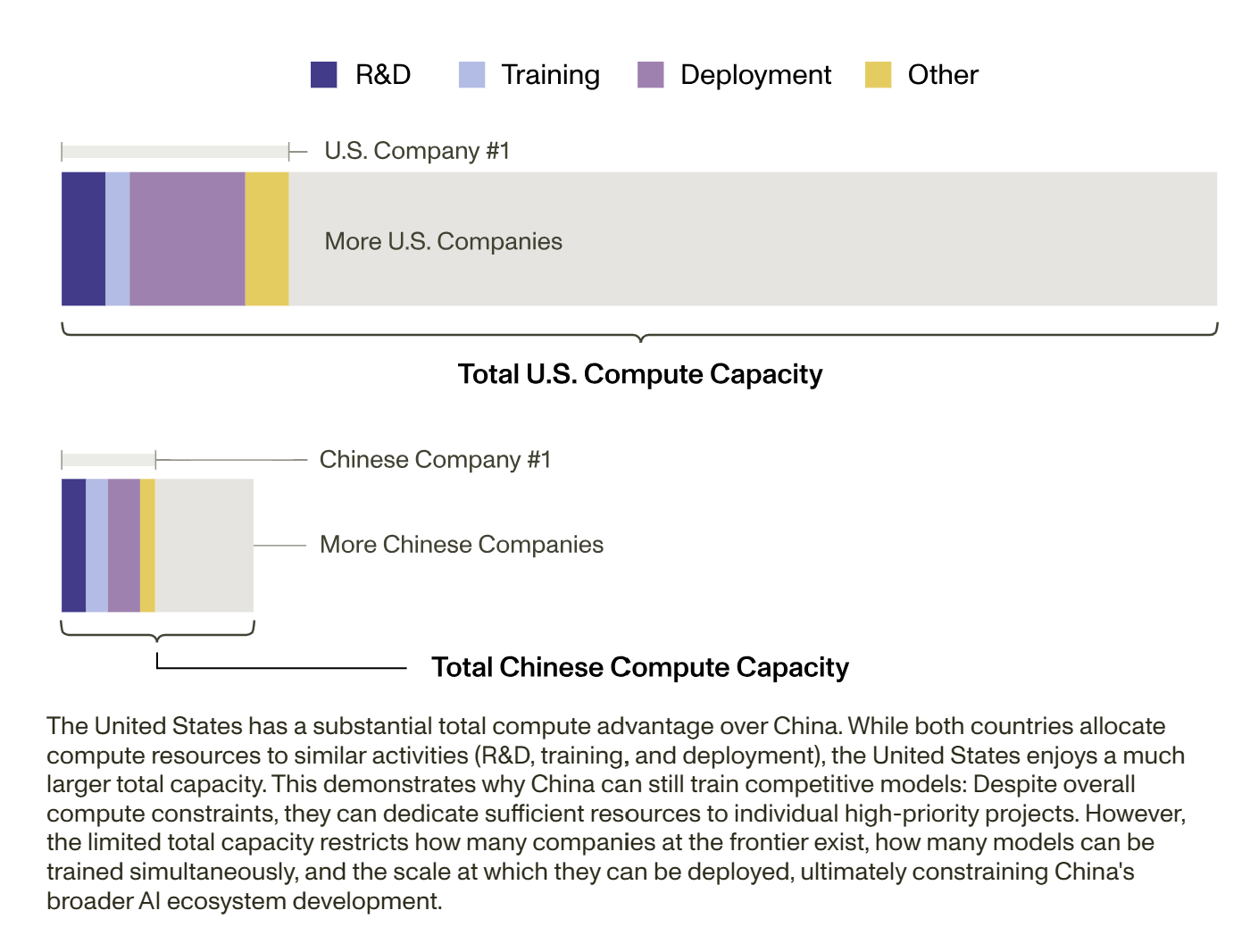 Great powers are still internally debating which strategy to take. In the US (both within the Trump administration and the broader AI policy environment), we see lively discussion around which of these stances to take. Likewise, China seems undecided between strategical approaches. That said, China is in the slightly less option-rich position of being behind on both compute and models, meaning that it has no realistic way to implement restrictive export regimens just yet.