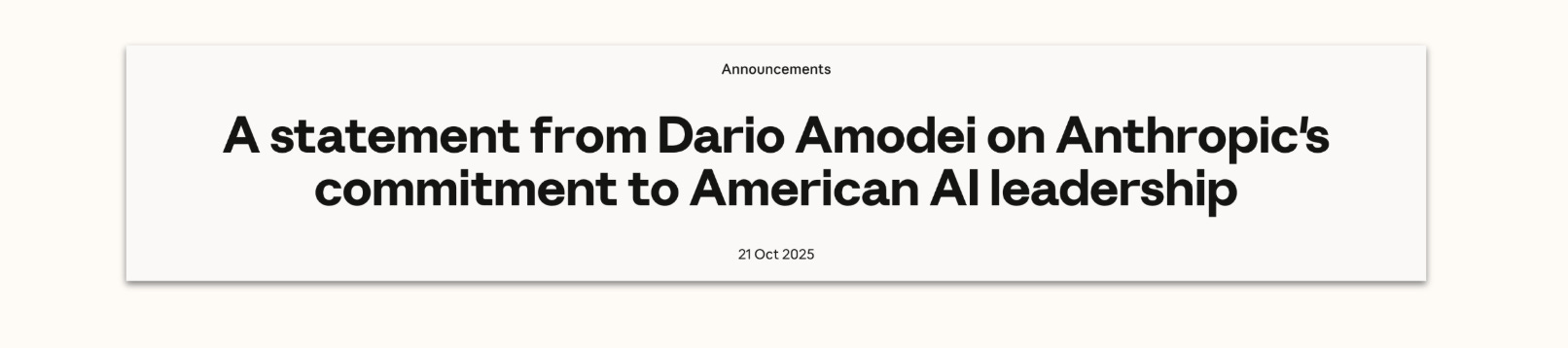 Even today, some cracks are showing. In recent months, political criticism of Anthropic has grown, resulting among other things in heated social media discussions, a missing invitation to a high-level White House AI event and repeated public criticism from White House AI Czar David Sacks. In the aftermath, Anthropic seemed compelled to clarify, and issued a direct leadership statement reaffirming areas of alignment with the Trump administration. In a subsequent, somewhat atypically voiced press release on datacenter buildouts, they again noted their interest in ‘building in America’. I suspect such moments will continue to mount: as government involvement in AI rises, skepticism over harms and bubble concerns grows, and dependency on government support for continued buildout increases, more adversarial positioning will be harder and harder to sustain without costs to Anthropic’s other goals. Their on-the-ground government affairs work will be sensitive to that fact.