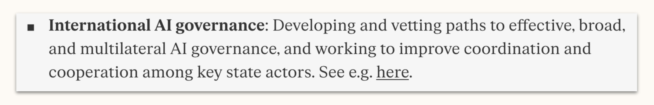 The research ecosystem can do more. Established scholars already work closely on national sovereignty, but until recently, their work on strategic questions has always been wrapped in layers of interpretation that contextualised it with some development-focused AI safety point. Giving these researchers freedom and encouragement to pursue these questions without a predetermined takeaway, suggesting that whatever strategic pathway they find is of value, could unlock substantial resources. These people have the ideas – make it clear it’s part of the mission and not taboo to get them out there.