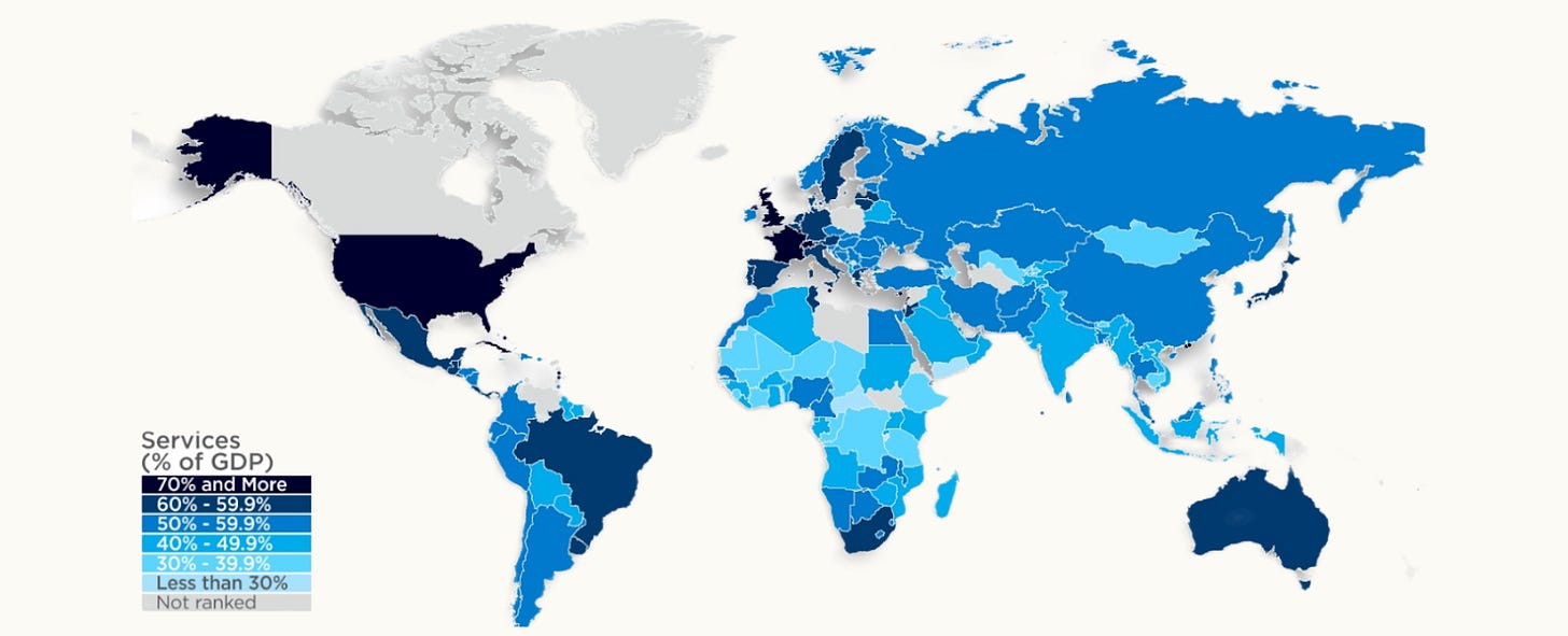 In recent decades, the measure of an economy’s progress has been the growth of its service sector: the ability of its population to work out of gleaming skyscrapers instead of smog-filled industrial plants, the degree to which its growth is divorced from the material constraints of physical labour. Strongholds of the fastest growth often still bear marks of that departure: I write today’s piece from the 60th floor of a Hong Kong skyscraper that rises from the vestiges of a now almost-irrelevant industrial harbour, against the backdrop of a buzzing services industry that seems sure to have left its humble physical roots behind.